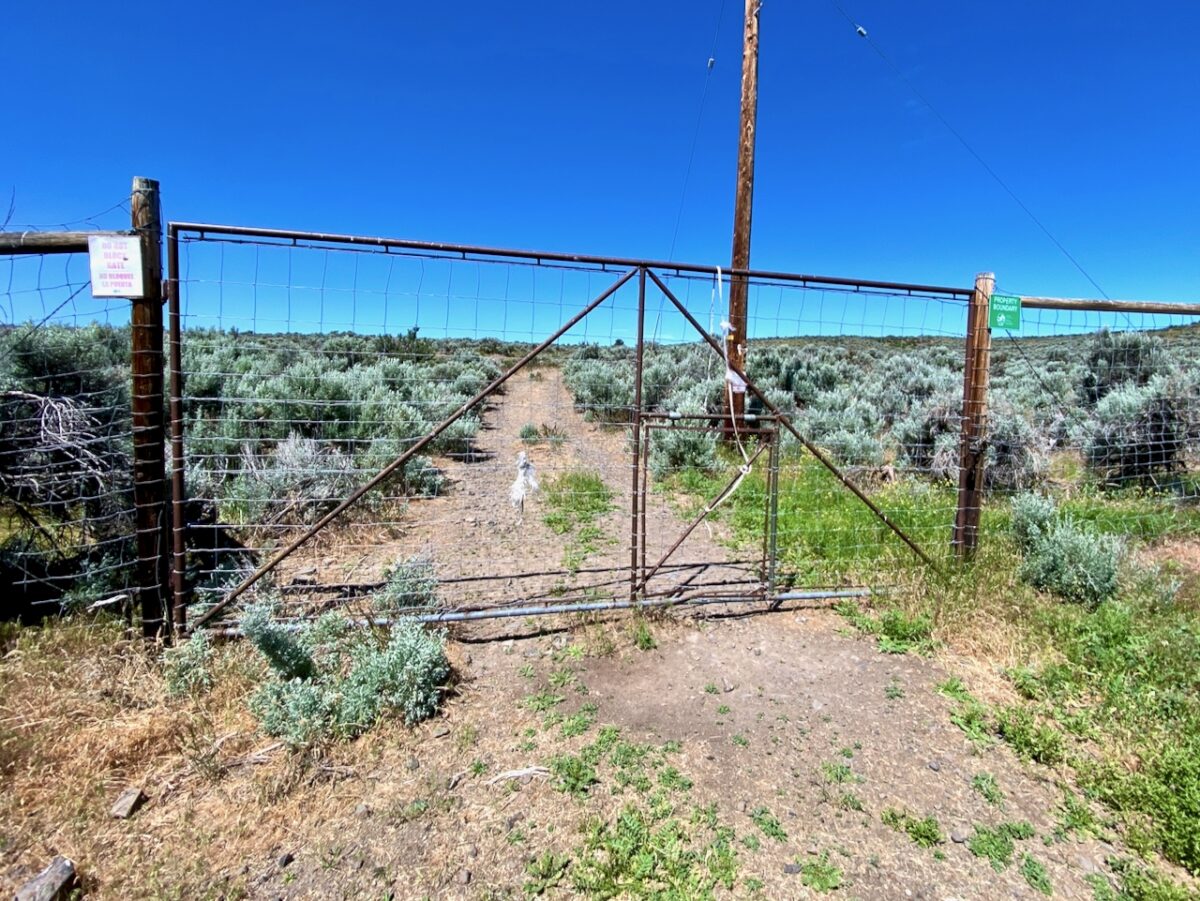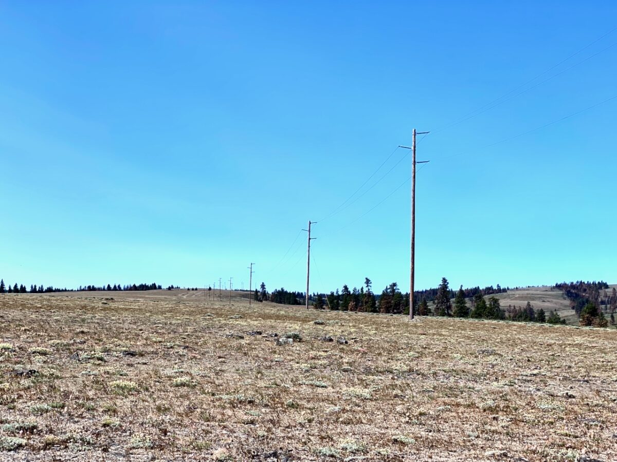 From here, the trail passes through private land, then state land, before entering private land again. At this point, the trail leaves the road and follows an old jeep track under the power lines. A track is discernable, but for much of the distance there is no track, one just follows the power poles, passing though state and federal lands.