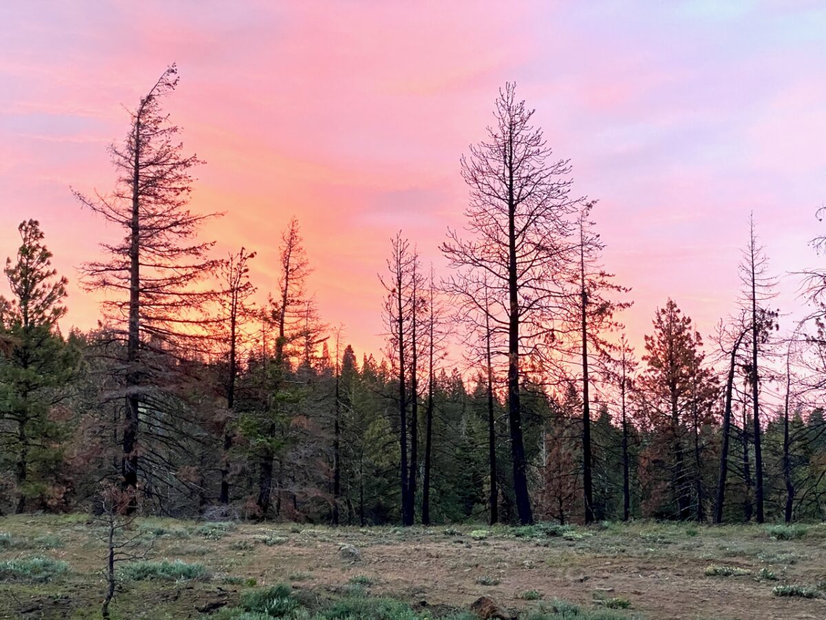 The area between the creek and my camp had burned over a year or two ago. Down in the gully, the smell still lingered. While the creek was not freely flowing at this point, there was an area where a trickle seeped out along the creekbed and flowed over rocks before disappearing back into the soils. I was able to get fresh, cold water here. Enjoyed a peaceful evening and a lovely, if subtle, sunset.