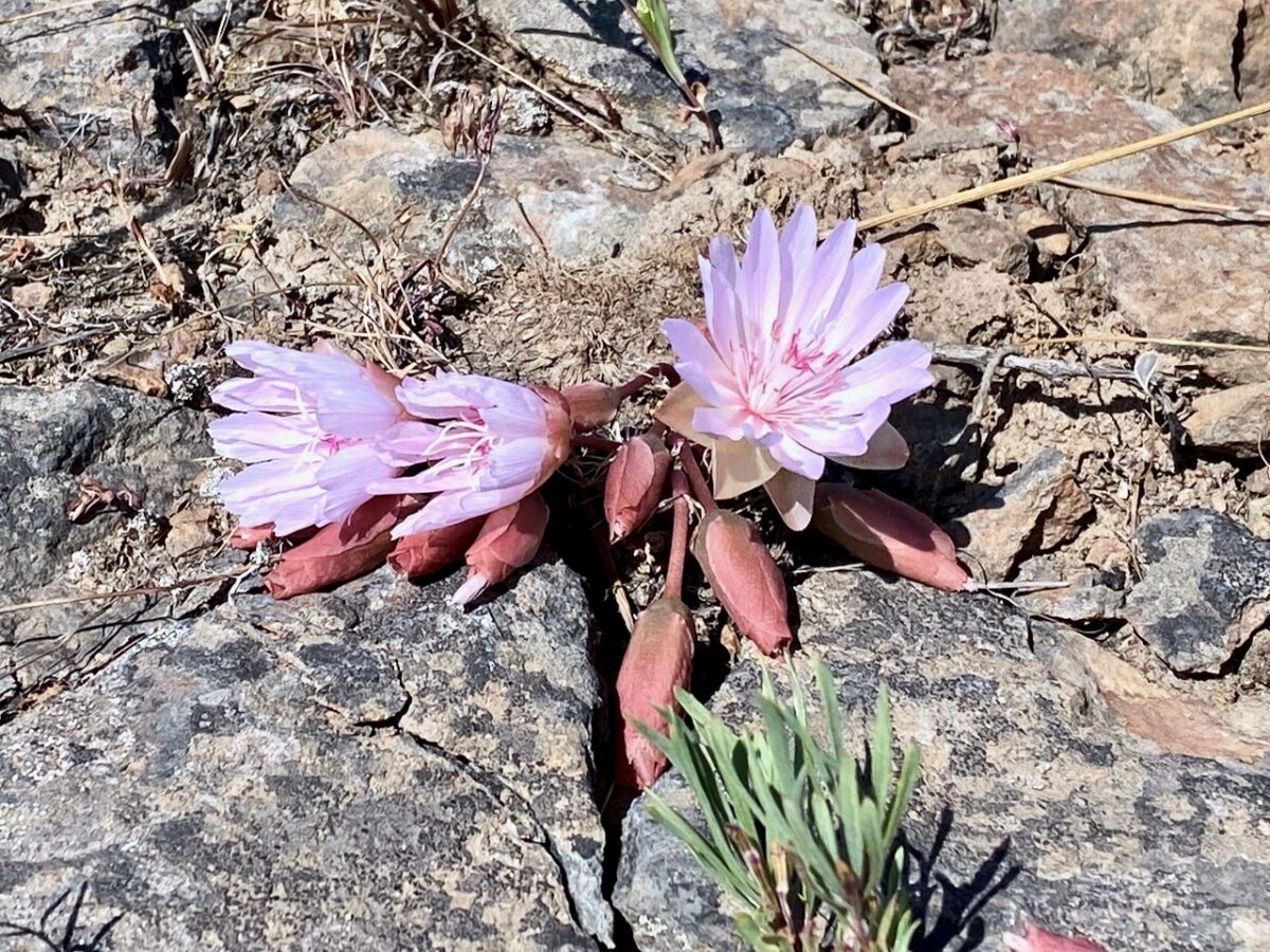 The trail stays at the top of the ridge the entire time, providing lots of territorial views over the dry countryside. Vegetation is mostly grass and such, with some shrubs and pine and dougas fir trees scattered about. Bitterroot, lupine, and other flowers were in full bloom.