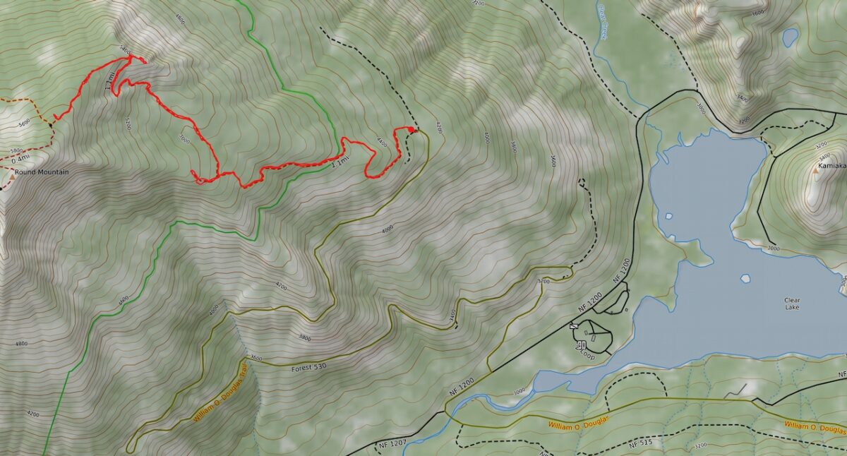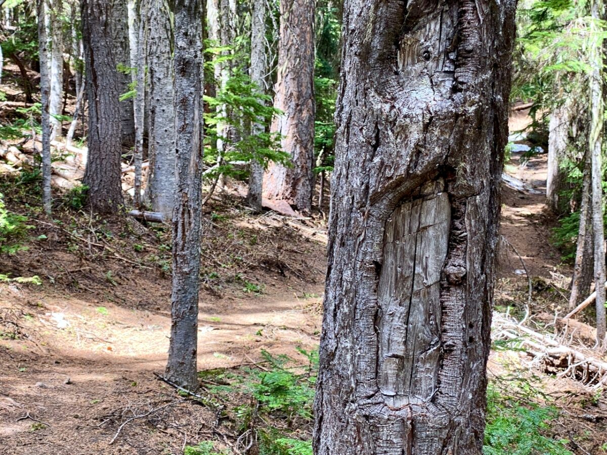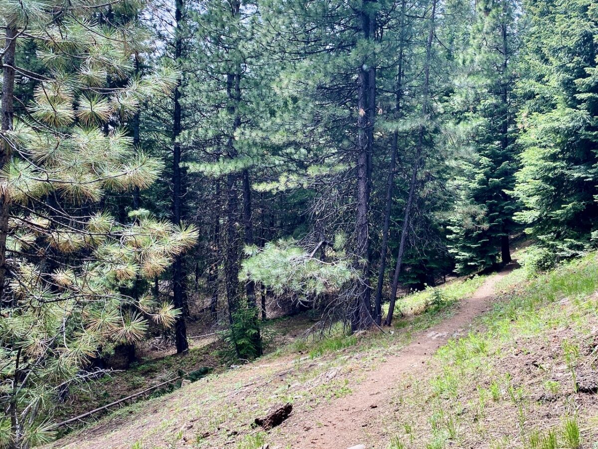 This time, I drove up to the Round Mtn trail head and set up camp right alongside the small parking area. Enjoyed a lovely evening, then in the morning, set out on the trail. I had intended to hike to the PCT if I could get that far. Turns out, I could not.